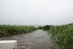 La ravine Sèche en crue à hauteur du pont de la nationale 2 à Saint-Benoît, à la suite du passage du cyclone Bejisa. | |