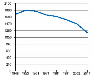 En 2011, l'âge moyen de la population était de 43,3 ans, 42,3 ans pour les hommes et 44,3 ans pour les femmes[6].