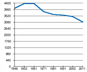 - 1 2 (sr + en) « Livre 20 : Vue d'ensemble comparative de la population en 1948, 1953, 1961, 1971, 1981, 1991, 2002 et 2011, données par localités) » [PDF], pages du recensement de 2011 en Serbie - Institut de statistique de la république de Serbie, (consulté le )