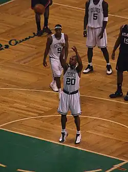 - ↑ (en) Jim Fenton, « Celtics’ Ray Allen fine-tunes his foul shooting after missing three in Game 4 of NBA playoffs against Heat », sur patriotledger.com, GateHouse News Service, (consulté le ).