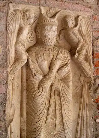 - Un bas-relief encastré au-dessus de la porte de l'église Saint-Jacques de Canet-en-Roussillon, représentant l'âme d'un défunt montant au ciel, portée par deux anges dans un linceul[6] et qui proviendrait soit de l'ancienne église Saint-Jacques, détruite sur ordre du roi d'Aragon[7], soit de l'église Saint-Martin du Château, aujourd'hui ruinée[8].