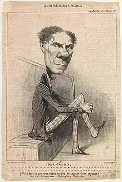 Après avoir échoué plusieurs fois comme candidat à la députation, notamment lors des élections à l'Assemblée constituante (1848), Ségur d’Aguesseau fut élu, le , par les conservateurs royalistes des Hautes-Pyrénées, représentant à l'Assemblée législative, le 1er sur 5. À l'ouverture de la session, lorsque Landelphe demanda qu'on acclamât le gouvernement républicain, Ségur d'Aguesseau expliqua le peu d'enthousiasme de la droite. Ségur opina avec la majorité, pour l'expédition de Rome, pour la loi Falloux-Parieu sur l'enseignement, pour la loi restrictive du suffrage universel. Il se sépara de la majorité pour seconder la politique du prince-président et fit partie de la Commission consultative nommée au lendemain du coup d'État. Dans la dernière séance de cette Commission, il dit: « La voix de Dieu vient de se faire entendre ; le grand acte du , cet admirable coup de vigueur contre l'anarchie, contre l'un des foyers les plus ardents de la démagogie européenne, est désormais ratifié, consacré, glorifié par le peuple français. » Et il demanda, « pour faire cesser la situation abaissée faite depuis trois ans au chef de l'État que le président logeât dans l'antique palais des rois héréditaires, seule résidence digne de lui. »