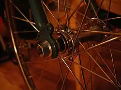 Dans le cas particulier des roues de vélo, ces tiges métalliques ne sont pas vraiment disposées radialement, car cela empêcherait de transmettre le couple. Elles sont légèrement obliques et réparties sur deux réseaux dont les effets s'opposent.
