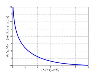 Dans un plasma , les électrons libres produisent constamment un Bremsstrahlung lorsqu'ils entrent en collision avec des ions . Dans un plasma uniforme contenant des électrons thermiques[ note 1] , la densité spectrale de puissance[ note 2] du Bremsstrahlung émis se calcule à partir de l'équation différentielle [ 1] :