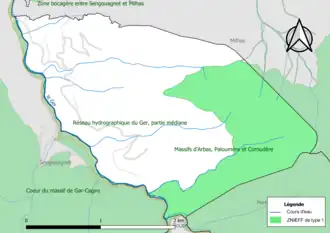 - ↑ « ZNIEFF le « réseau hydrographique du Ger, partie médiane » - fiche descriptive », sur le site de l'inventaire national du patrimoine naturel (consulté le ).