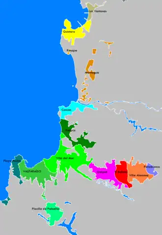 Reñaca est une station balnéaire chilienne offrant de nombreuses plages. Elle est située au nord de Viña del Mar, près de Valparaiso.