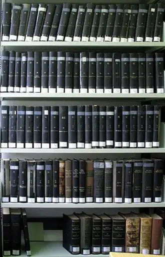- August Pauly, Georg Wissowa, Wilhelm Kroll, Kurt Witte, Karl Mittelhaus, Konrat Ziegler, Paulys Realencyclopädie der classischen Altertumswissenschaft : neue Bearbeitung, Stuttgart, J.B. Metzler, 1894-1980.