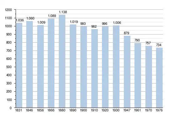 - Sources : INS, Rem. : 1831 jusqu'en 1970 = recensements, 1976 = nombre d'habitants au 31 décembre.