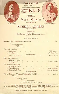 - ↑ Schleifer, Martha Furman (2000). Program notes to Clarke's Sonata for Viola and Piano. Hildegard Publishing Company.