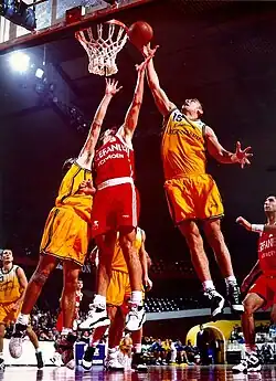 Au basket-ball, le rebond désigne le fait de capter la balle après un tir manqué et avant que celle-ci ne touche le sol.