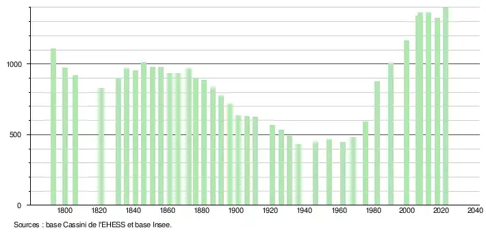 - ↑ Fiches Insee - Populations de référence de la commune pour les années 2006, 2007, 2008, 2009, 2010, 2011, 2012, 2013, 2014, 2015, 2016, 2017, 2018, 2019, 2020, 2021 et 2022.