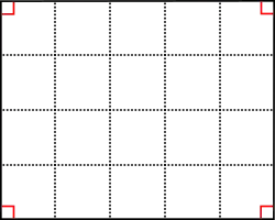 Tout rectangle peut servir à constituer un pavage du plan. Cela signifie qu'il est possible, avec des rectangles identiques, de recouvrir tout le plan sans superposer deux rectangles. Des droites perpendiculaires partagent le plan en zones rectangulaires.