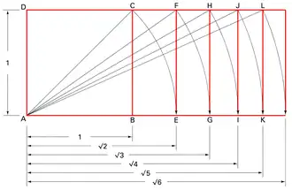 Le rectangle de format égal à pour entier > 0 peut être construit à la règle et au compas par la méthode illustrée ci-contre.
