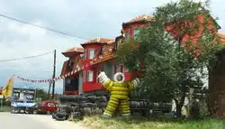 Quelques maisons entières ont été construites (principalement aux États-Unis) avec des pneus emplis de sable ou de terre puis recouvert de béton.