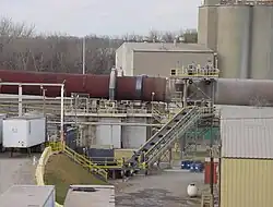 Une variante consiste à injecter dans une chambre de combustion de précalcinateur des copeaux de pneus (5 à 10 mm)[46].
