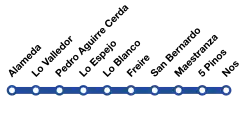 | Plaza de Maipú - Vicente Valdés | 29 km | 30 | 5 avril 1997 | Souterrain / Viaduc | |
