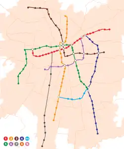 Le réseau de métro est constitué des 7 lignes suivantes :