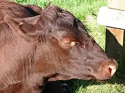 Elle porte une robe rouge sombre, allant de l'acajou au noir. Les muqueuses sont claires (couleur chair) et les deux sexes sont sans cornes. C'est une race de taille moyenne. Elle pèse de 500-700 kg chez la vache à 850-950 kg chez le taureau.