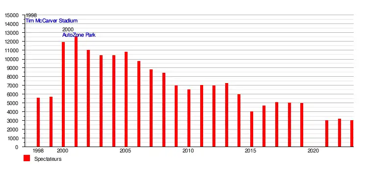 - ↑ (en) « Tim McCarver Stadium in Memphis, TN minor league baseball history and teams on StatsCrew.com », sur www.statscrew.com (consulté le )