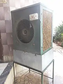 Un refroidisseur par évaporation, appelé aussi rafraîchisseur adiabatique, est un dispositif qui refroidit l'air par évaporation de l'eau.