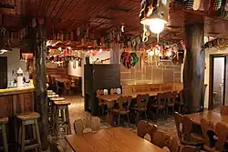 L'ancienne école, aujourd'hui utilisée comme club-house pour la jeunesse rurale, les amateurs de randonnée, les pompiers et le club de chant, les appartements privés et la cave à fous de la guilde des fous.