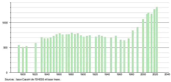 - ↑ Fiches Insee - Populations de référence de la commune pour les années 2006, 2007, 2008, 2009, 2010, 2011, 2012, 2013, 2014, 2015, 2016, 2017, 2018, 2019, 2020, 2021 et 2022.