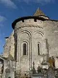 Le chevet a été fortifié par construction d'une galerie crénelée sous le toit et percement de nombreuses meurtrières.