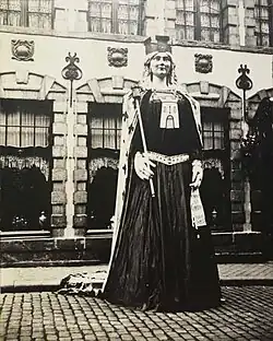 En 1933, le premier cortège de géants de la ville fut organisé. Pour l'occasion, Reine Tournai est accompagnée de nouvelles créations de l'ébéniste : les géants Childéric, Louis XIV, Christine de Lalaing, Sarragos et Louis XVIII. En 1934, pour la 2e édition, elle est rejointe par d'autres encore : les croisés (Lethalde et Engelbert) et Châle vert.