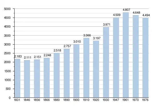 - Sources : INS, Rem. : 1831 jusqu'en 1970 = recensements, 1976 = nombre d'habitants au 31 décembre[7].