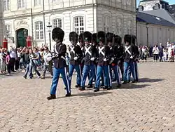 Relève de la garde à l'Amalienborg de Copenhague au Danemark.
