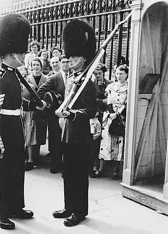 Relève de la garde au palais de Buckingham en 1953.