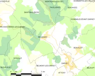 - ↑ « Orthodromie entre Relanges et Lignéville », sur fr.distance.to (consulté le ).