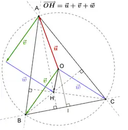 Soit le centre du cercle circonscrit au triangle , son orthocentre. La relation de Sylvester s'écrit [1],[2] :