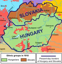 Après la dislocation de l'empire austro-hongrois en 1918, en réaction à la situation antérieure, une politique de la slovaquisation a été entreprise, ressentie comme une persécution par le demi-million de Magyars vivant du côté tchécoslovaque de la frontière et majoritaires dans certaines villes comme Košice[6].