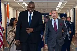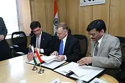 Le chef d'État-Major des armées des États-Unis, Mike Mullen, a encouragé le renforcement des liens militaires entre l'Inde et les États-Unis et a déclaré que « l'Inde est devenue un partenaire stratégique de plus en plus important [des États-Unis] »[70]. Le sous-secrétaire d'État américain William Joseph Burns a également déclaré : « Il n'y a jamais eu un moment où l'Inde et l'Amérique ont eu plus d'importance l'une pour l'autre »[71]. Le secrétaire adjoint à la défense, Ashton Carter, lors de son discours devant l'Asia Society à New York le , a déclaré que les relations entre l'Inde et les États-Unis ont une portée mondiale, en termes de portée et d'influence des deux pays. Il a également déclaré que les deux pays renforcent les relations entre leurs organisations de défense et de recherche[72].