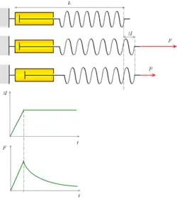 montrant une décroissance exponentielle des contraintes avec le temps (elle se relaxe), avec un temps de relaxation ou temps de réponse[4], (noté aussi ), associé au modèle ; à un temps infini, il y a relaxation totale des contraintes.