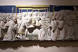 - don d'une relique du lait par le comte Guido Guerra VI prieur de l'église Saint Laurent de Montevarchi. (Montevarchi, Collegiata di San Lorenzo Museum)