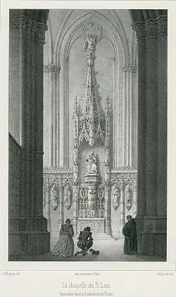 - ↑ La chapelle du saint Lait était une des merveilles de notre cathédrale ; l'élégance de ses sculptures en avait fait un des chefs-d'œuvre de l'art gothique. Elle était détruite bien avant la révolution. M. Louis Paris en a retrouvé le dessin ; il doit en publier l'histoire et la description.