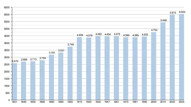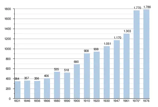 Les chiffres des années 1831 à 1970 tiennent compte des chiffres des anciennes communes fusionnées.