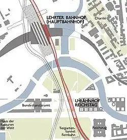 La division de la ville entre 1961 et 1989 a fortement perturbé le développement du réseau de transports. Pour remédier à cette situation, les anciennes voies ont été reconstruites et reliées et de nouveaux travaux ont été réalisés : percement de tunnels (Tiergartentunnel) sous le Tiergarten, l'un routier, l'autre ferroviaire. Les gares et les stations de métro ont également été remodelées et, en , a été inaugurée la gare centrale de Berlin qui doit être le moteur du développement de ce quartier, basé sur un plan d'urbanisation qui maintient un équilibre entre bureaux, hôtels, commerces, logements et zones vertes. Quatre autres gares ont par ailleurs été inaugurées dans l'axe nord-sud et est-ouest de la capitale, afin de compléter le nœud de communication le plus grand d'Europe[13].