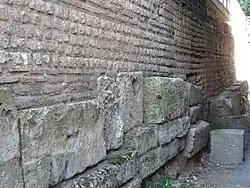 - ↑ Des éléments de cette première fortification sont retrouvés sur plusieurs dizaines de mètres à l'est de l'enceinte du Bas-Empire[2].