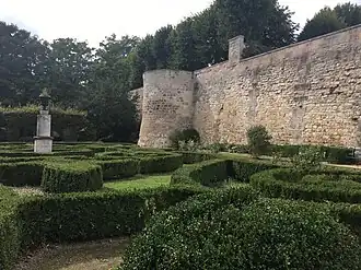 Le « Jardin des remparts » occupe les fossés médiévaux, jadis larges de 16 m et profonds de 10 m. Ce « jardin des remparts » fut conçu par Ferdinand Bac vers 1923[3]. Au pied d'une courtine conservée sur près de 300 m de long et 7 m de haut, il y plante un labyrinthe de buis taillés formant un dessin harmonieux que l'on découvre du haut des remparts eux-mêmes. Ce jardin municipal, avec une aire de jeu pour les enfants, offre une promenade au cœur de la ville.