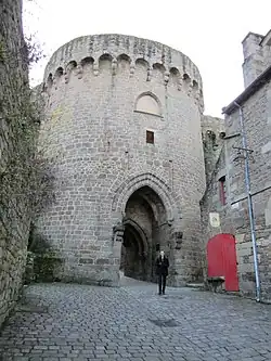 | 21 | Porte du Guichet (Voir sur Wikidata) | 48° 27′ 00″ N, 2° 02′ 40″ O | Fin XIIIe siècle - Début XIVe siècle[39] | Entrée principale, à l'aboutissement de la route menant de Nantes et Rennes. Son nom laisse supposer qu'un de ses vantaux comportait une porte piétonne. Bouchée de 1593 à 1932[40]. | ![]() | |