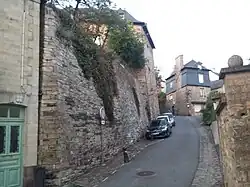 | 17 | Contrescarpe | Rue Rallon | XIIIe siècle | Subsiste une contrescarpe le long des remparts Est sur la promenade du Val. Celle de la rue de la Borderie est de la roche lors du creusement des fossés. | ![]() | |