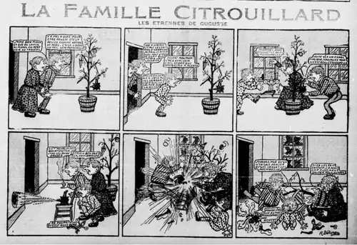 En 1903, il est recruté comme dessinateur pour le journal La Patrie. En compagnie d'Albéric Bourgeois et de Raoul Barré, il compose des strips de six cases comportant des phylactères : sa série La Famille Citrouillard — lointain écho à La Famille Fenouillard (1889-1893) de Christophe — est aujourd'hui célèbre pour être l'une des premières bande dessinée francophone structurée ainsi[2],[3]. Son travail pour La Patrie commence en et s'arrête sans doute vers , période au cours de laquelle il invente plusieurs autres séries, comme Le Père Nicodème. Ensuite, La Famille Citrouillard est reprise par Théophile Bisson puis Th. Busnel ; par la suite les personnages de la Famille Citrouillard se mélangent à ceux des Aventures de Timothée, et vice-versa[4],[5].