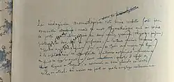 Notation dans le manuscrit de la seconde édition de l’Aromathérapie, revenant sur la création du néologisme.