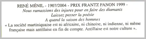 - ↑ Extrait de Tracées, identité, négritude, esthétique aux Antilles publié en 1992, par René Ménil.