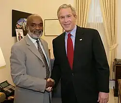 René Préval succède à la présidence à Jean-Bertrand Aristide le , pour un mandat de cinq ans qui s'achève le ; Jean-Bertrand Aristide lui succède.
