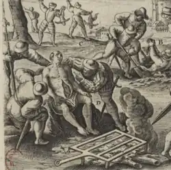 - 1587 (la) : Theatrum Crudelitatum hæreticorum nostri temporis, Adrianus Hubertus, Anvers (Théâtre des cruautés des hérétiques de notre temps, réimprimé en 1588, en 1592 et en 1603 ; édition révisée en 1604, la traduction française est publiée en 1587 sous le titre Théâtre de cruautez, et réimprimée en 1588, en 1592, en 1607 et en 1995 [établissement du texte, présentation et notes par Franck Lestringant, Paris, Chandeigne]). Gallica