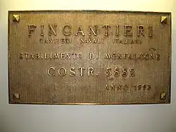 | Chantier naval | Stabilimento di Monfalcone, Fincantieri - Cantieri Navali Italiani S.p.A. |